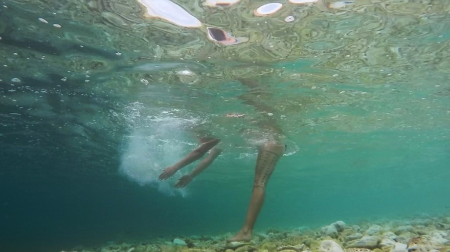 Walking the Wall is a single-channel widescreen video in colour, with sound, during which Tiatia, wearing a simple black leotard and stiletto shoes lying on her back with her eyes locked on the camera, ‘walks’ up and down a wall until she can no longer. The video runs for 13.04 minutes. The plain white walls throw emphasis on her shoes and ‘malu’. The video begins with unshod shoes on the floor. Tiatia enters the frame, puts on the shoes, places herself, still standing, in front of the side wall, fixedly looking at it before positioning herself lying on her back before it. She then proceeds to steadily ‘walk’ up the wall toes touching at first, then heels until she gets to the highest she can reach – which requires her raising her body onto her shoulder blades. We can see her leg muscles working in the process. After four minutes have elapsed she is beginning to struggle as her feet periodically slide down the wall and now and then she pauses. A couple of minutes further in our protagonist drags herself a little closer to the wall, rests briefly, takes a deep breath and returns determinedly to her task. Her action pushes her backwards so she needs to regularly re-position. This scenario repeats in a robotic manner which is occasionally broken with Tititia taking an audible breath and sagging sideways, showing us she is human. Despite her discomfort, with discernible show of will, Tiatia doggedly carries on. All the while her face remains mostly passive. After twelve minutes Tiatia ends her ‘walking’. She rolls over on her side, rests momentarily, returns to her back before removing her shoes, getting up and walking out of the frame. Faint marks line the white wall where her shoes have slid. Her demeanour is one of exasperation, just as she said she is with what she refers to as “the double standards within Samoan culture”. Males may show their tattoos, women may not. One gets the feeling she has been taken to task over this and here is her reply. A reply that shows a strength of will and call for respect.