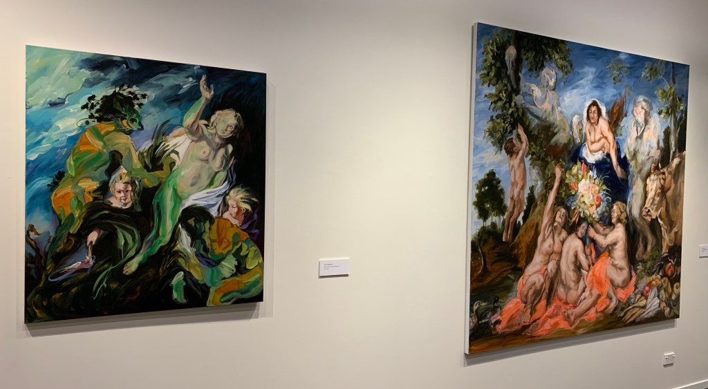 This is the story depicted in Anita DeSoto’s Her Fire for Life, after Jordaens. It is a story of greed and power, not of love. It is a story of freedom and security stolen. It is a story of women who know their own minds and refuse to acquiesce, and of women’s connection with nature. It is a story of control over women’s bodies, treating them as useful objects. Sound familiar, even today?