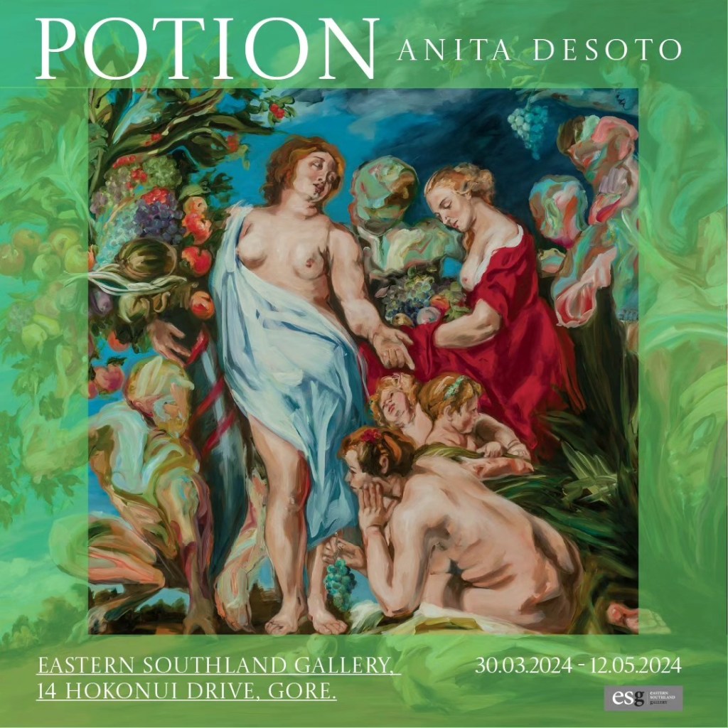 Essay on the occasion of the Anita DeSoto exhibition, Potion at Eastern Southland Gallery, Gore, Aotearoa-New Zealand, 30 March – 12 May 2024